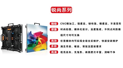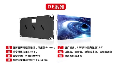 銳尚系列顯示屏每塊模組均擁有獨(dú)立主控芯片,能夠自動(dòng)讀取和記錄模組的工作數(shù)據(jù),同時(shí)具有錯(cuò)誤偵測(cè)和定位等功能。小間距DE系列顯示屏設(shè)計(jì)輕薄,有效減少屏體安裝空間。