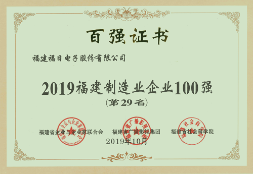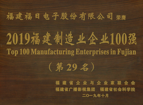 20191024日,由福建省企業與企業家聯合會、福建省社會科學院、福建省廣播影視集團共同舉辦的2019年福建企業100強研究發布會在福建漳州舉行,福建福日電子股份有限公司入選2019福建制造業企業100強。福日電子總裁溫春旺受邀參會。
