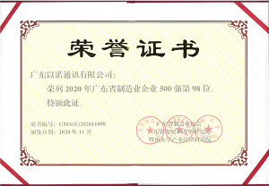 2020年11月26日,由廣東省制造業(yè)協(xié)會、廣東省發(fā)展和改革研究院、暨南大學產(chǎn)業(yè)經(jīng)濟研究院主辦的“2020廣東省制造業(yè)發(fā)展年會暨廣東省制造業(yè)500強企業(yè)峰會”在中山市舉行。本屆年會以“推動制造業(yè)高質(zhì)量發(fā)展——擁抱5G+工業(yè)互聯(lián)網(wǎng)、搶抓國內(nèi)大循環(huán)機遇”為主題,會上發(fā)布了2020年廣東省制造業(yè)500強企業(yè)研究報告,福日電子二級控股子公司廣東以諾通訊有限公司榮列2020年廣東省制造業(yè)企業(yè)500強第98位。