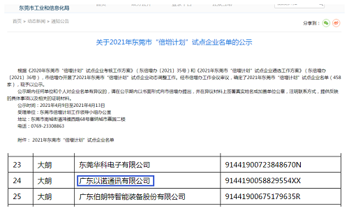 以諾通訊入選2021年?yáng)|莞市“倍增計(jì)劃”試點(diǎn)企業(yè)名單