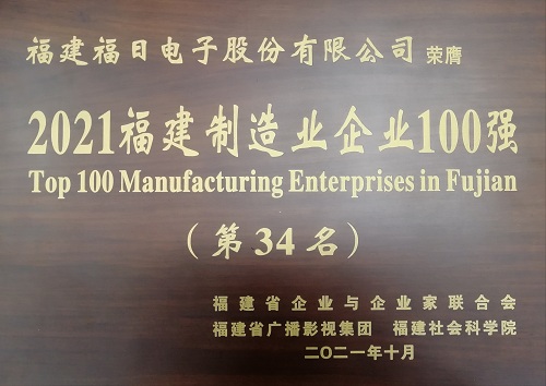 2021113,2021福建企業100強發布大會暨福建企業家大講壇活動在福州舉行。會上發布了2021福建企業100強、制造業企業100強、服務業企業100強等榜單,福日電子入選2021福建制造業企業100強(第34名)。