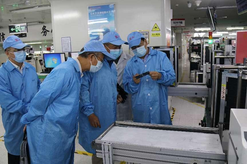 胡文海一行還實地考察了以諾通訊的生產車間,認真聆聽自動化生產線及產品介紹,對以諾通訊的制造能力給予高度評價。