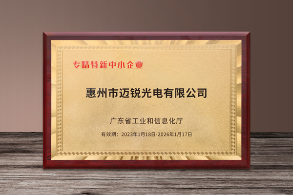 邁銳光電榮獲廣東省“創新型中小企業”及“專精特新中小企業”雙項榮譽