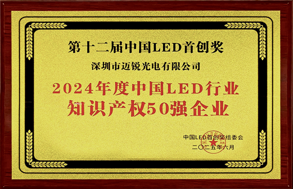 2025年6月,在第十二屆中國LED首創(chuàng)獎(jiǎng)?lì)C獎(jiǎng)典禮上,福日電子成員企業(yè)邁銳光電成功入選“2024年度中國LED行業(yè)知識產(chǎn)權(quán)50強(qiáng)”,以突出技術(shù)創(chuàng)新力與知識產(chǎn)權(quán)管理能力贏得行業(yè)高度認(rèn)可。